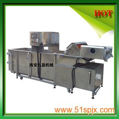 將切割好的蔬菜、水果,采用高壓氣泡水浴沖擊下,使物料在水里翻轉(zhuǎn),有效地分離蔬菜表面的泥沙、雜質(zhì)、污物,水流的