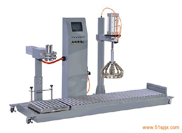 人工上空桶——按啟動按鈕——灌槍自動插入桶口——自動定量灌裝——灌槍自動升起——人工放蓋——機器夾鎖蓋