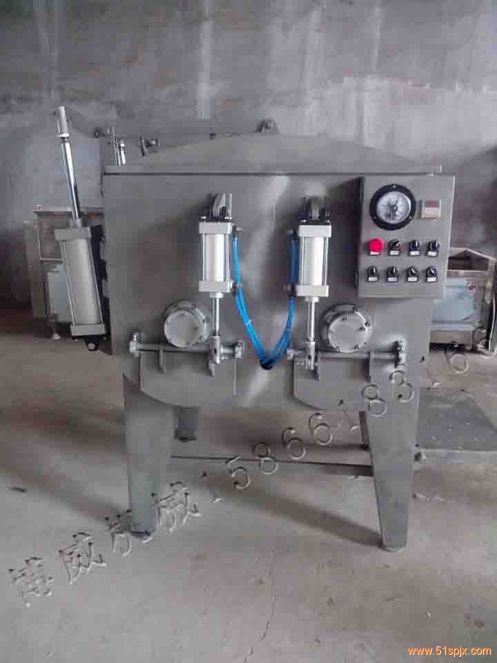 300L真空拌餡機(最佳裝料為200kg),本機設計為雙絞籠,自動出料,自動開合蓋。用于各類烤腸餡類攪拌,適用于小型烤腸企業與實驗室用。主要用于攪拌餡狀物料,也可用于其它散狀物料太粉狀,醬狀物品的攪拌和混合。 效率高,便于操作,是制作風干腸類產品、料狀泥狀混合腸炎產品、丸類產品的首選設備, 混料速度快,操作簡單,方便自如,自動出料,勞動強度更低,獨有的旋齒排列形式使物料混合更均勻,單次裝料理更多。獨有的三層密封保護設備使用壽命更長,清洗更方便。