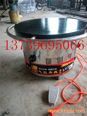 燃氣煎餅爐,2灶煎餅果子機,旋轉式燃氣煎餅爐 雜糧煎餅果子機 煎餅果子機,為方便客戶流動作業,新款推出旋轉式燃氣煎餅爐,接上煤氣就能生產,機器高度48cm 簡介:耐用結實的鍋面,直徑48cm,加上不銹鋼把子后直徑60cm,鍋面厚度0.8cm,使用厚鋼板制作而成,手動可以旋轉 2個全銅節能灶加熱效果均勻,使用方便簡單 電子打火開關,10萬次電子打火壽命,加熱久了也不會軟化。