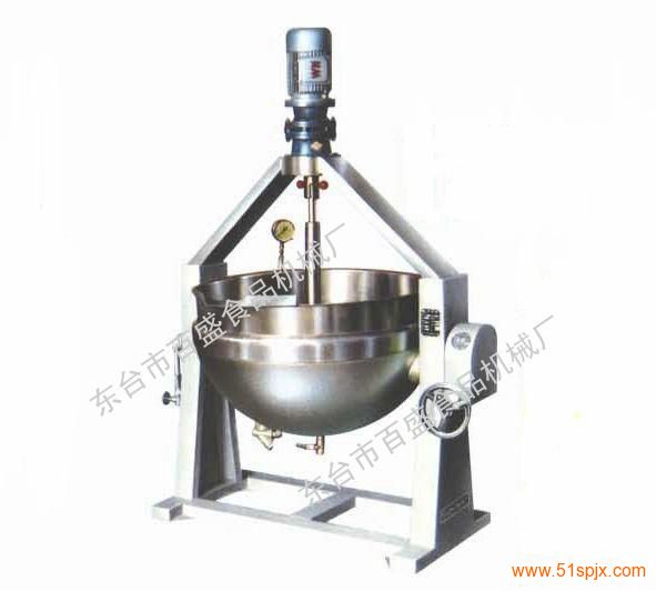 該機(jī)采用不銹鋼制造可采用電、煤、氣、蒸汽、導(dǎo)熱油進(jìn)行加熱,帶自動(dòng)攪拌,可傾式倒料。