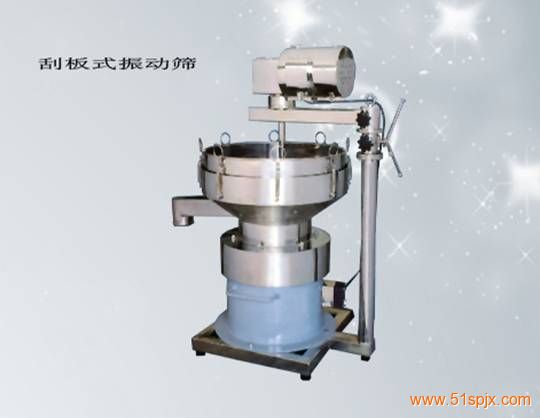※ 在振動篩選過程中,粘性物料粘住篩盆,及一輕質料飄起難于過網,通過篩盆上的轉動式刮板加壓,強迫物料過網,從而解決了一般篩選機不能篩選以上特征物料的問題。