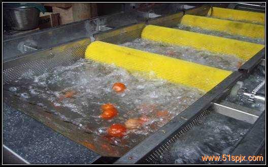 果蔬清洗機(jī)采用高壓汽泡水浴清洗,輔以強(qiáng)水流催流,適應(yīng)于莖類、葉類蔬菜、蘑菇及中草藥等物料的清洗,尤適于山野菜及腌漬菜的清洗、脫鹽,清洗能力大、洗凈率高且不損傷物料,經(jīng)過旋翻催流至輸送網(wǎng)帶,在網(wǎng)帶上進(jìn)行高壓水流清洗最后傳送至輸送帶。本設(shè)備除電機(jī)、軸承等標(biāo)準(zhǔn)件外均采用不銹鋼SUS304材料制作,完全符合出口食品衛(wèi)生要求。設(shè)備中設(shè)有氣泡發(fā)生裝置和高壓噴淋裝置,使物料呈翻滾狀態(tài),去除產(chǎn)品表面農(nóng)殘功效,同時(shí)可加入適量的藥劑,進(jìn)行消毒固色,漂浮物可以從溢流槽溢出,沉淀物從口排出,以達(dá)到清洗的目的。本清洗機(jī)是針對外形要求高的物料設(shè)計(jì)。
