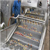 ②設備中設有氣泡發(fā)生裝置,使物料呈翻滾狀態(tài),去除產(chǎn)品表面農(nóng)殘的功效,同時可加入適量的藥劑,進行消毒固色。漂浮物可以從溢流槽溢出,沉淀物從排污口排出,以達到清洗的目的。