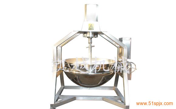 本產品凡接觸食品部分皆為06Cr19Ni10不銹鋼制造并進行拋光處理,符合《中華人民共和國食品衛生法》的要求,具有造型美觀、設計合理、結構緊湊、安裝方便、操作簡單、便于維修。攪拌方式采用特殊的傾斜式傳動,使用的行星式攪拌器與鍋體充分接觸。攪拌系統采用自轉公轉相結合的方式,其傳動比為不整數傳動比,保證鍋內無任何攪拌盲點。使用先進的傳動與密封結構,使傳動部分與鍋內潔凈、衛生。該系列設備自動/液壓型是利用液壓推力使攪拌臂翻轉,免拆裝攪拌器,再利用液壓推力傾翻鍋體,易于進出原料節省人力,采用無級變頻調速器能將高粘度產物混合均勻加熱提高熱量,具有易于操作,工作效率高,耗能低,使用壽命長,結構緊湊,維修方便等特點,是性能優良的攪拌機。
