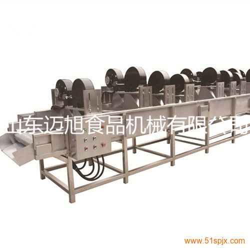 翻轉式風干機主要適用于熱水殺菌或蒸汽殺菌的產品在殺菌后及時將包裝物表面的,殘留水滴去除,并可直接裝箱的專用設備。可廣泛用于食品、飲料、調味品、奶業、醫藥等行業。特別適用于袋裝豆制品、泡菜、榨菜、醬菜等。可實現連續作業(可與連續工作殺菌機配套使用),只需將殺菌后的產品放入輸送網帶,經本機產生的高壓,低溫的氣流經噴嘴上下噴射而出,從而達到包裝除水、除油漬、水垢等效果,即可裝箱入庫。提高了生產效率。