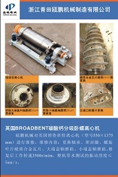 甌鵬機械對英國博魯班特離心機(型號550x375m)進行維修,維修內容:更換軸承,密封圈·螺旋葉片硬合金瓦片、大端蓋軸磨損,修復后工作轉速3500r/mim,整機帶水測試的振動烈度<m/s。