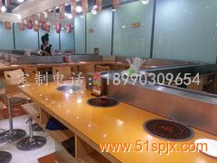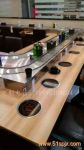自貢旋轉火鍋 旋轉吧臺,自貢壽司輸送設備,自貢回轉火鍋輸送帶,自貢自助火鍋設備 火鍋設備 回轉火鍋設備鏈板及鏈條均采用304磨沙面沖壓而成,板厚1.8mm,寬度140mm,鏈條節距100mm,鏈條下部分導軌面板采用304銹鋼鏡面,板厚度為1.2mm,內部采用白色防摩尼龍墊條,旋轉吧臺,壽司料理,旋轉火鍋,自助火鍋餐廳。下架采用30mm*30mm*1.5的碳鋼方管焊接而成,表面經過防銹處理,所有連接部分均采用標準件連接,便于移裝。旋轉吧臺,壽司輸送設備,回轉火鍋輸送帶,適應了飲食界推陳出新,適應了現代人對飲食新奇的追求。旋轉吧臺,壽司輸送設備,回轉火鍋輸送線是你從事餐飲火鍋行業,日本料理,韓國料理必備前衛機械設備.