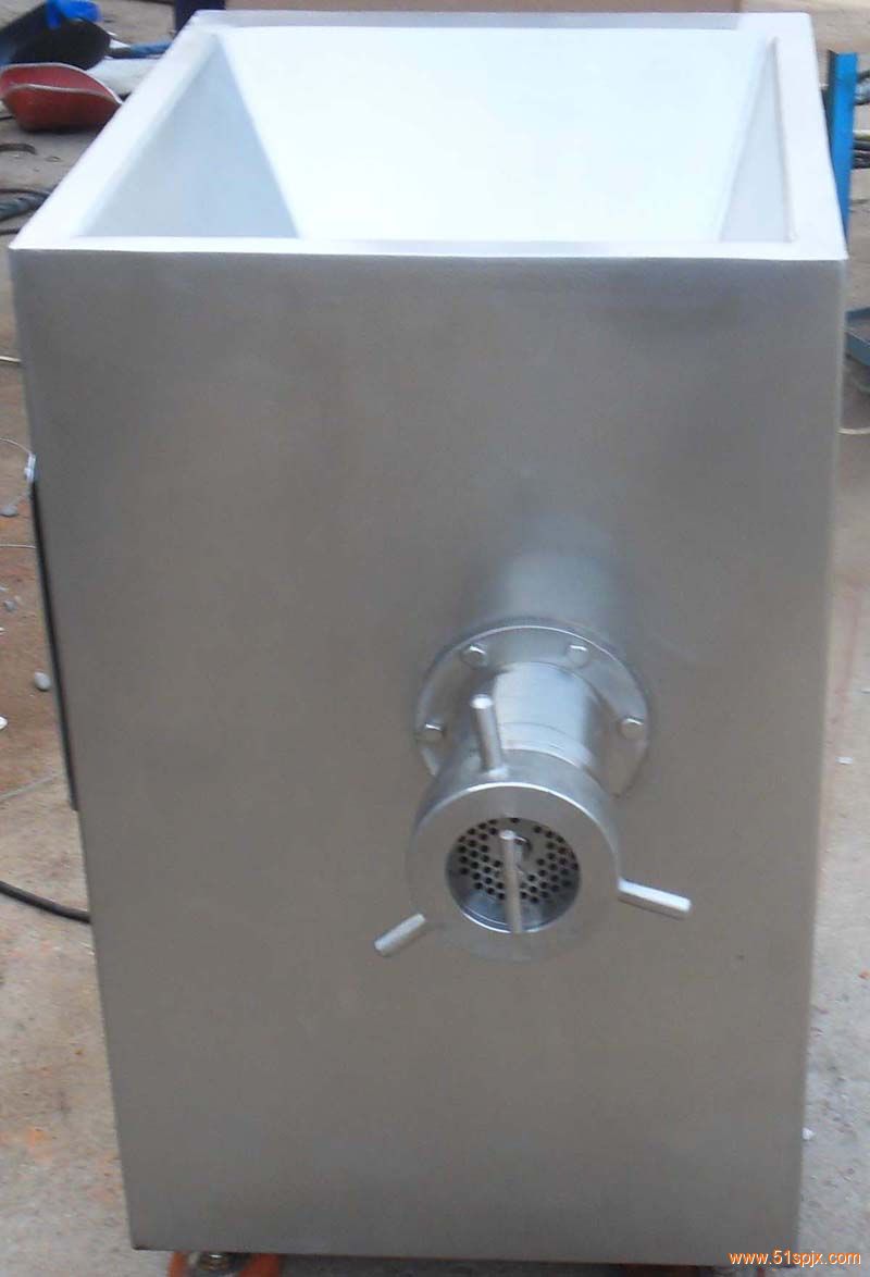 絞肉機(jī)是食品加工中不可缺少的設(shè)備,絞肉機(jī)是采用旋轉(zhuǎn)螺桿推進(jìn)原理,將料箱中物料推進(jìn)到預(yù)切孔板處,再利用旋轉(zhuǎn)的切刀刀刃和孔板刀上的孔眼刃形成的剪切作用下將物料切碎,并在螺旋桿的作用下,將物料源源不斷的輸送到機(jī)外。根據(jù)產(chǎn)品工藝要求,本機(jī)可配置相應(yīng)的刀具和孔板。