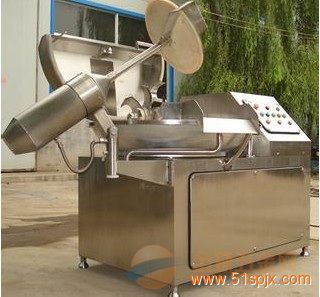 斬拌機是肉類制品生產的關鍵設備,尤其是生產西式火腿的必備設備。本機不僅能將肉塊、碎肉、脂肪等主料切成肉糜,同時還將主料、輔料攪拌成均勻的乳化物,使斬切、攪拌及乳化一次完成,使腸類制品的細密度和彈性增強,提高制品的出品率和產品質量。