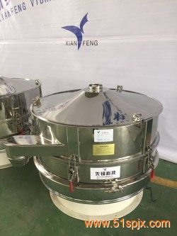 玉米粉除雜振動篩果汁過濾振動篩三次元旋振篩,由直立式電機作激振源,電機上、下兩端安裝有偏心重錘,將電機的旋轉運動轉變為水平、垂直、傾斜的三次元運動,再把這個運動傳遞給篩面,使物料在篩面上做外擴漸開線性運動,故該系列振動篩稱之為旋振篩。