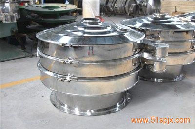 全脂奶粉振動(dòng)篩白砂糖除雜振動(dòng)篩白砂糖振動(dòng)篩(旋振篩),由立式振動(dòng)電機(jī)作為振動(dòng)源,電機(jī)上、下兩端安裝有偏心重錘,將電機(jī)的旋轉(zhuǎn)運(yùn)動(dòng)轉(zhuǎn)變?yōu)樗健⒋怪薄A斜的三次元運(yùn)動(dòng),再把這個(gè)運(yùn)動(dòng)傳遞給篩面,使物料在篩面上做外擴(kuò)漸開線運(yùn)動(dòng),故該系列振動(dòng)篩稱之為旋振動(dòng)篩。篩分過(guò)程中,小于篩面孔徑的物料通過(guò)篩孔落到下層,成為篩下物,大于篩面孔徑的物料經(jīng)連續(xù)跳躍運(yùn)動(dòng)后從排料口排出,最終完成篩分工作。實(shí)際運(yùn)用中,通過(guò)調(diào)整振動(dòng)電機(jī)上下兩端偏心塊的相對(duì)相位,可以改變篩面上物料的運(yùn)動(dòng)軌跡,延長(zhǎng)或縮短物料在篩面上的停留時(shí)間。從而達(dá)到不同的篩分目的。