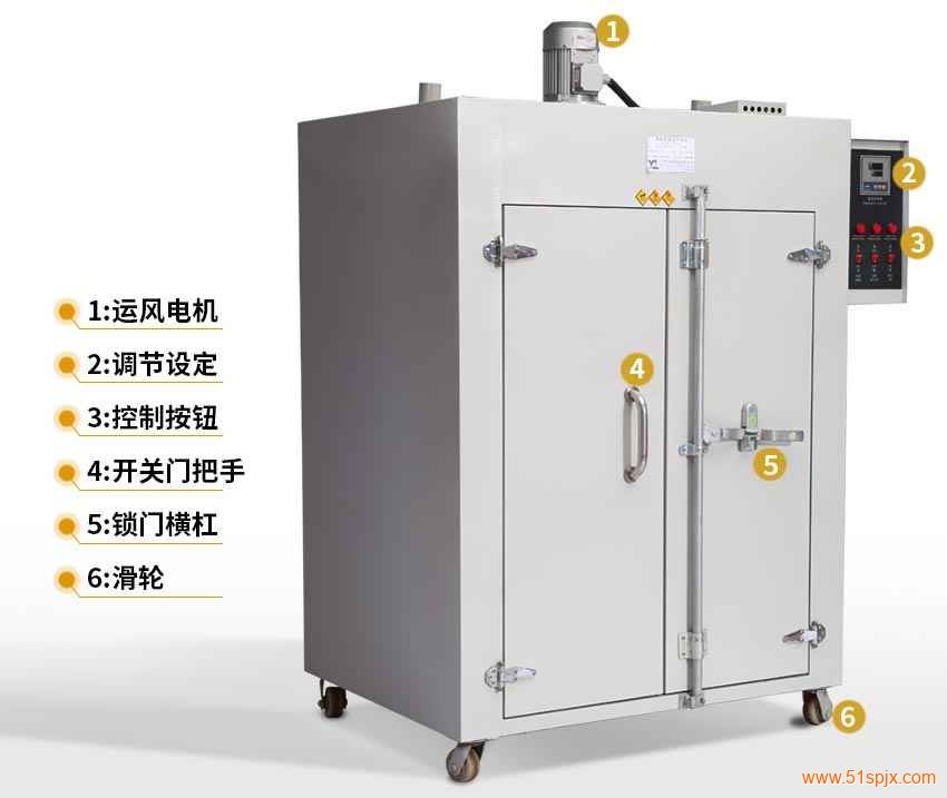 (1)、此款烤箱在工作室后部裝有發(fā)熱管,后面裝有鼓風(fēng)裝置,溫度控制儀控制溫度恒定及高低,工作時(shí)經(jīng)發(fā)熱管加熱再經(jīng)鼓風(fēng)裝置循環(huán)流動(dòng),確保溫度均勻,四周圓弧設(shè)計(jì),擱板上下間距可調(diào),內(nèi)置感溫。
