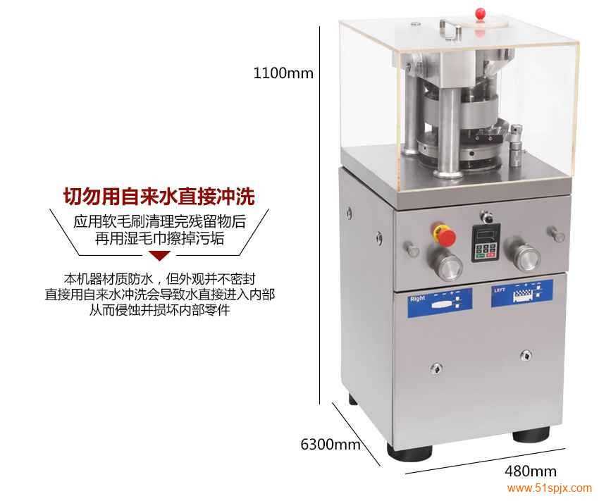 4、本機不適用于半固體、潮濕顆粒、低熔點易吸潮原料和無顆粉末壓片。