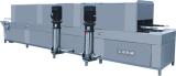 1. 洗筐機(jī)以高壓噴淋沖洗為主要清洗方式,以約60℃熱堿水為主要洗滌劑,以約60℃高壓熱水為主要清洗力進(jìn)行清洗,在熱堿水噴淋后加設(shè)毛刷對筐子左右及底部進(jìn)行刷洗,提高清洗潔凈度; 2. 設(shè)備有熱堿水噴淋段、毛刷刷洗段、熱水噴淋段、清水噴淋段、消毒水噴淋段、烘干段等幾部分組成,其中毛刷刷洗段、消毒水噴淋段及烘干段可根據(jù)客戶要求定配。 3. 消毒水箱內(nèi)消毒液由人工調(diào)好濃度后滴加,堿水箱及熱水箱內(nèi)分別設(shè)有蒸汽加熱管或電加熱管;兩水箱內(nèi)水溫自動控制,常溫至80℃任意設(shè)定。 4. 各個循環(huán)水箱均采用臥式不銹鋼離心水泵循環(huán)噴淋,從上、下、左、右四個方向同時對筐子進(jìn)行噴淋沖洗;每個水箱均設(shè)有二道過濾裝置,便于隨時清理贓物;各個水箱設(shè)單獨(dú)排污清理閥,排出后有截管同一排放。