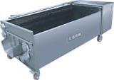 該設備外形尺寸2200×900×800mm,毛滾有效長度1500mm,生產能力每小時400公斤。采用毛刷原理有效去除表面表皮,箱體采用優質不銹鋼材質,不銹蝕,清潔衛生,毛輥不易變形,毛刷采用尼龍線繩軋制而成,經久耐用。分兩步清洗,首先毛滾去除表皮,然后上層噴淋管進行噴淋沖刷。