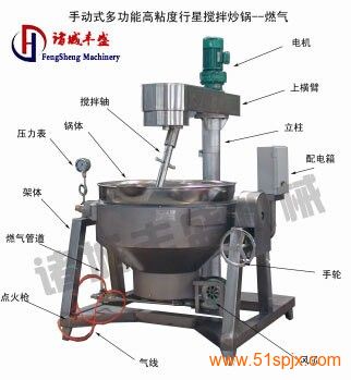 行星攪拌炒鍋產品構成:鼎順牌高粘度行星攪拌鍋系列設備主要由鍋體、架體、攪拌系統、加熱系統、調速傳動裝置、攪拌軸、鍋體翻轉系統等組成。