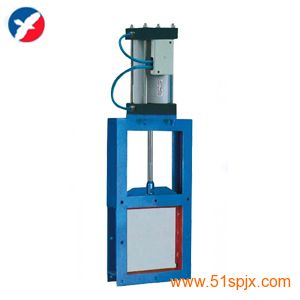 氣動閘板閥主要由氣缸、框架、閘板、絲桿、螺母等零件構成,氣缸帶著絲桿螺母和閘板沿水平方向往復運動,達到閘門的啟閉目的。